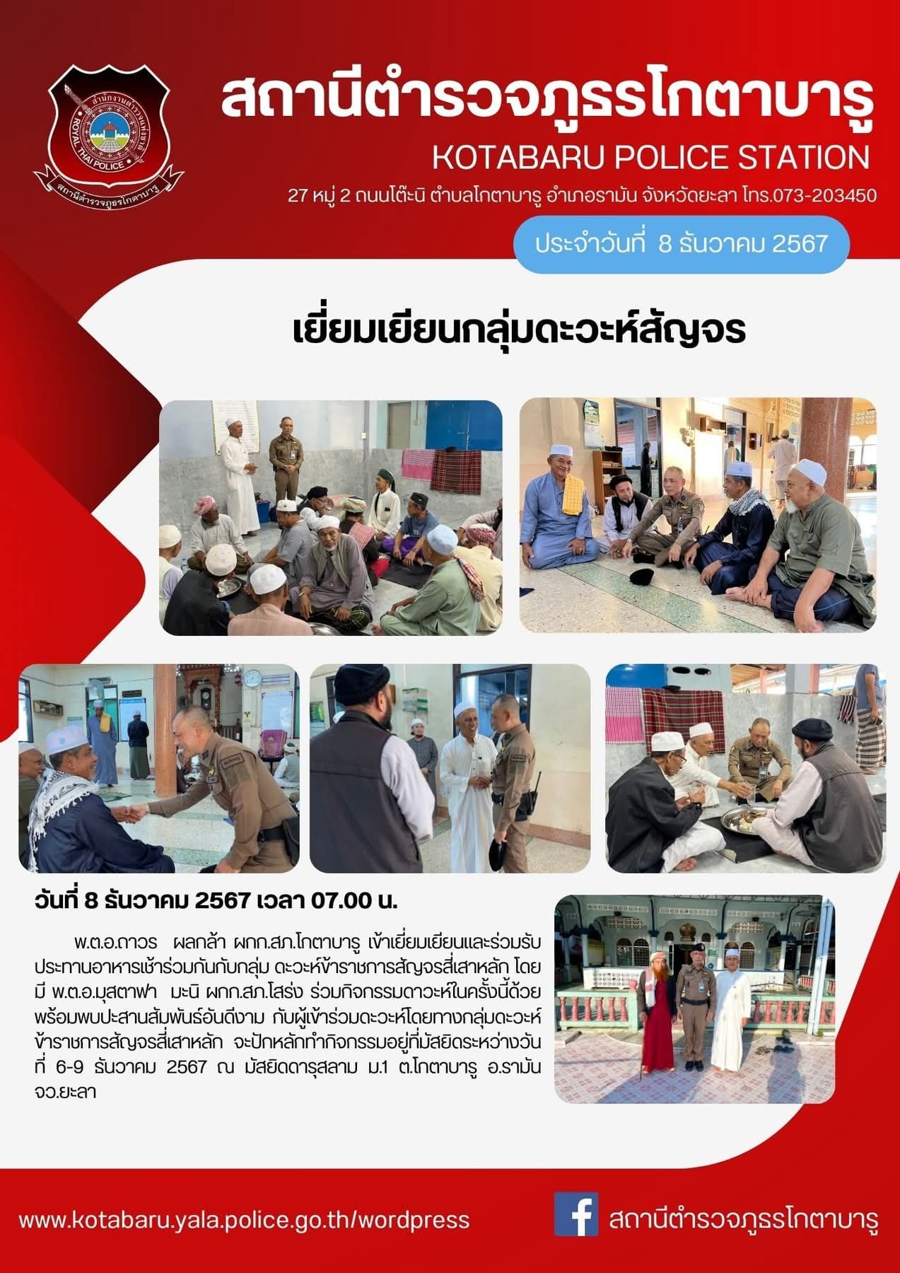 วันที่ 8 ธันวาคม 2567 เวลา 07.00 น. พ.ต.อ.ถาวร ผลกล้า ผกก.สภ.โกตาบารู เข้าเยี่ยมเยียนและร่วมรับประทา