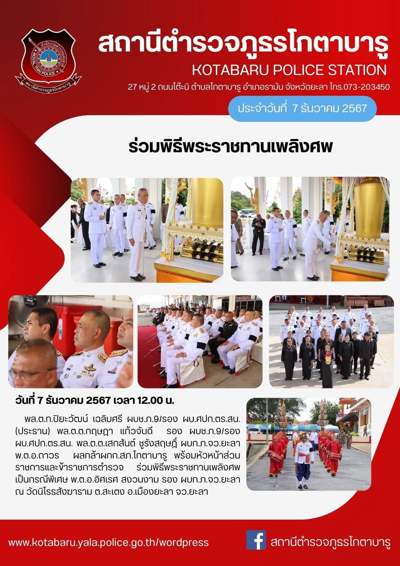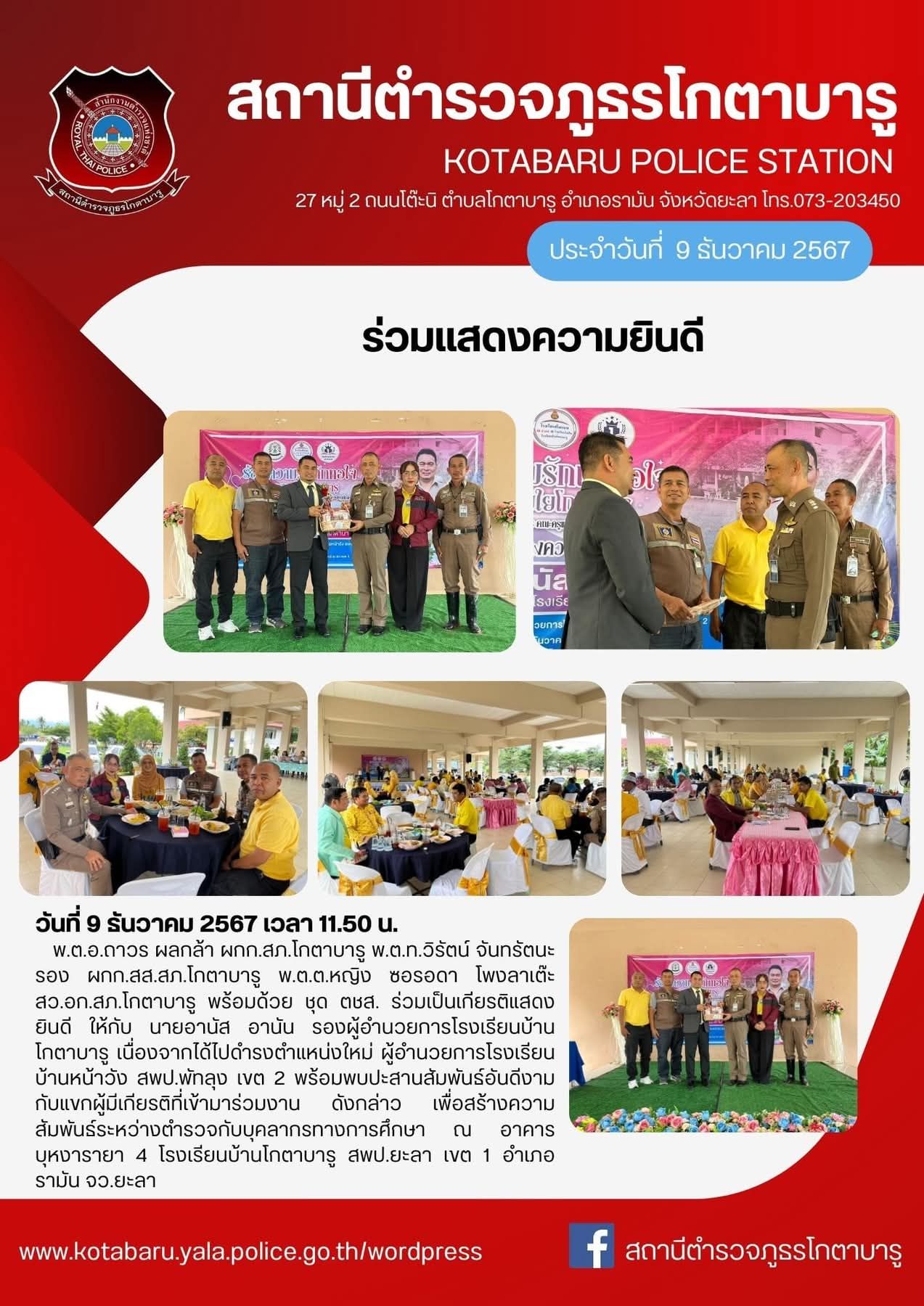 วันที่ 9 ธันวาคม 2567 เวลา 11.50 น. พ.ต.อ.ถาวร ผลกล้า ผกก.สภ.โกตาบารู พ.ต.ท.วิรัตน์ จันทรัตนะ รอง ผก