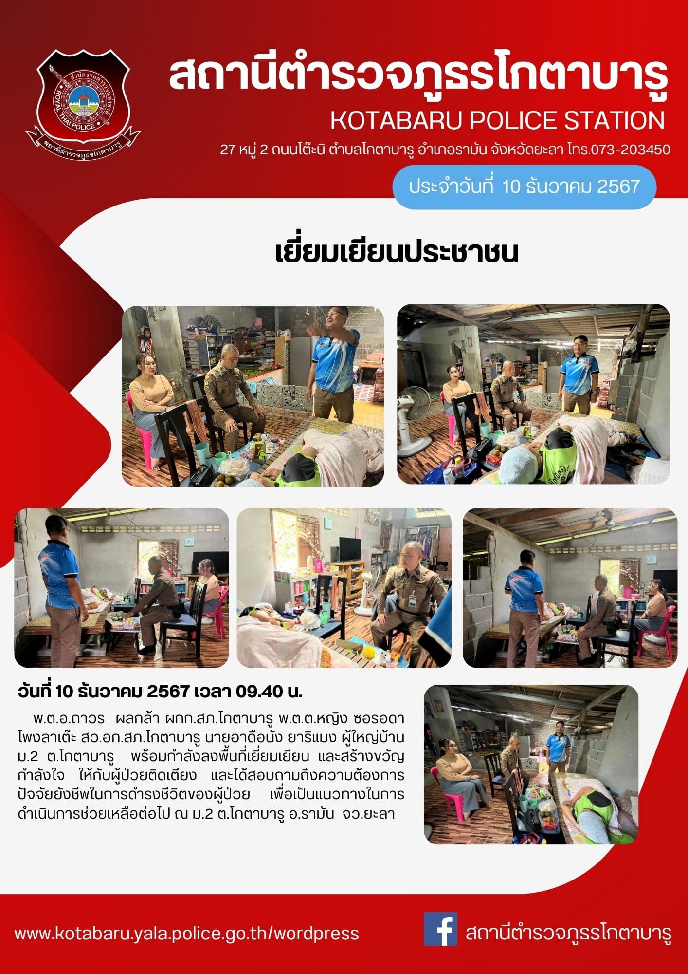 วันที่ 10 ธันวาคม 2567 เวลา 09.40 น. พ.ต.อ.ถาวร ผลกล้า ผกก.สภ.โกตาบารู พ.ต.ต.หญิง ซอรอดา โพงลาเต๊ะ ส