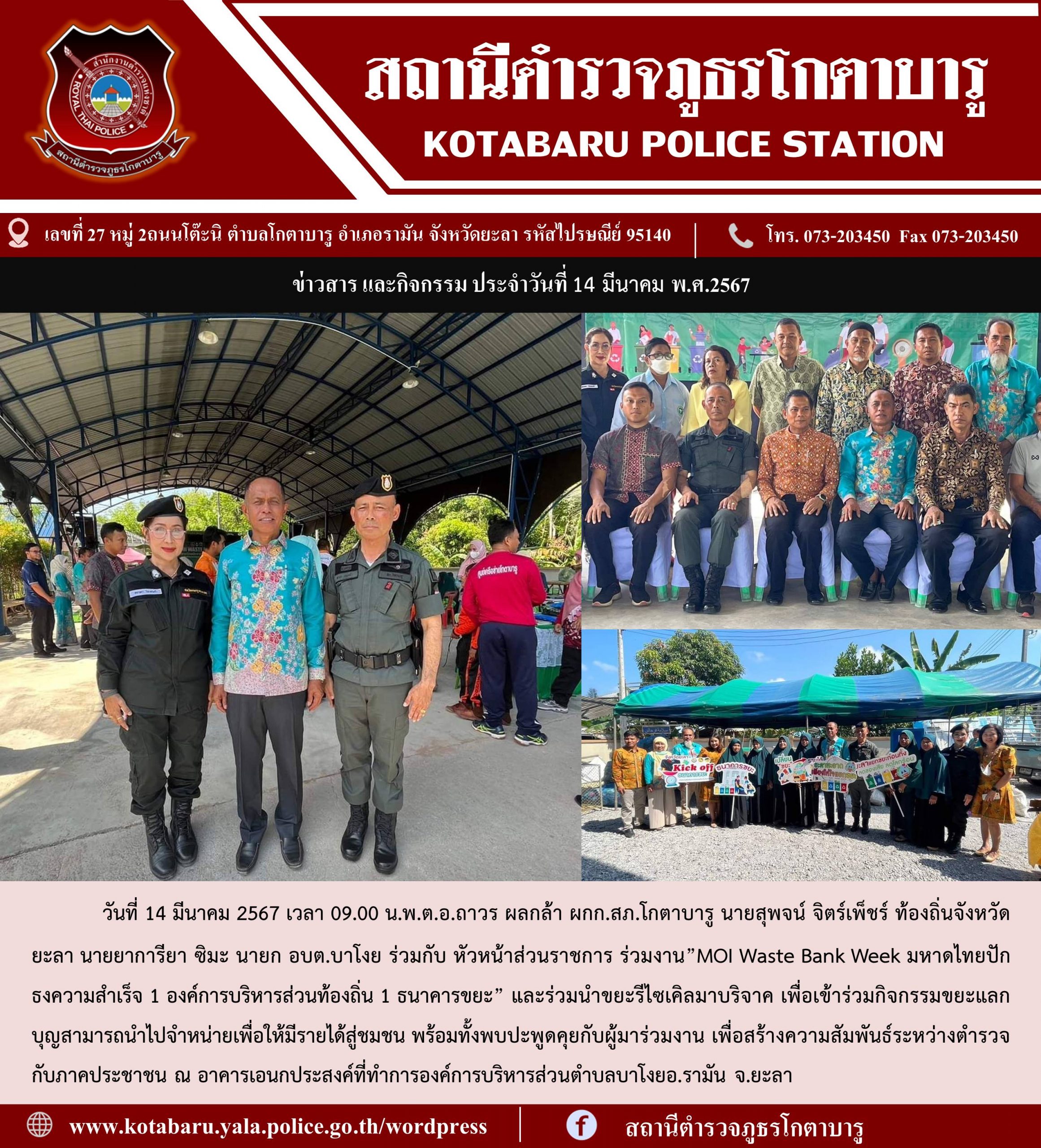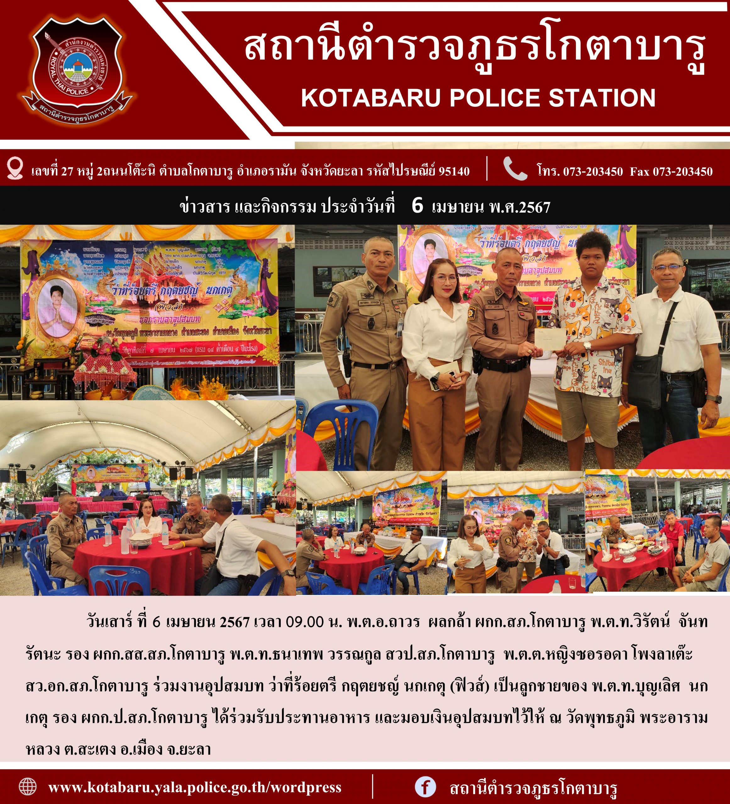 วันเสาร์ ที่ 6 เมษายน 2567 เวลา 09.00 น. พ.ต.อ.ถาวร ผลกล้า ผกก.สภ.โกตาบารู พ.ต.ท.วิ
