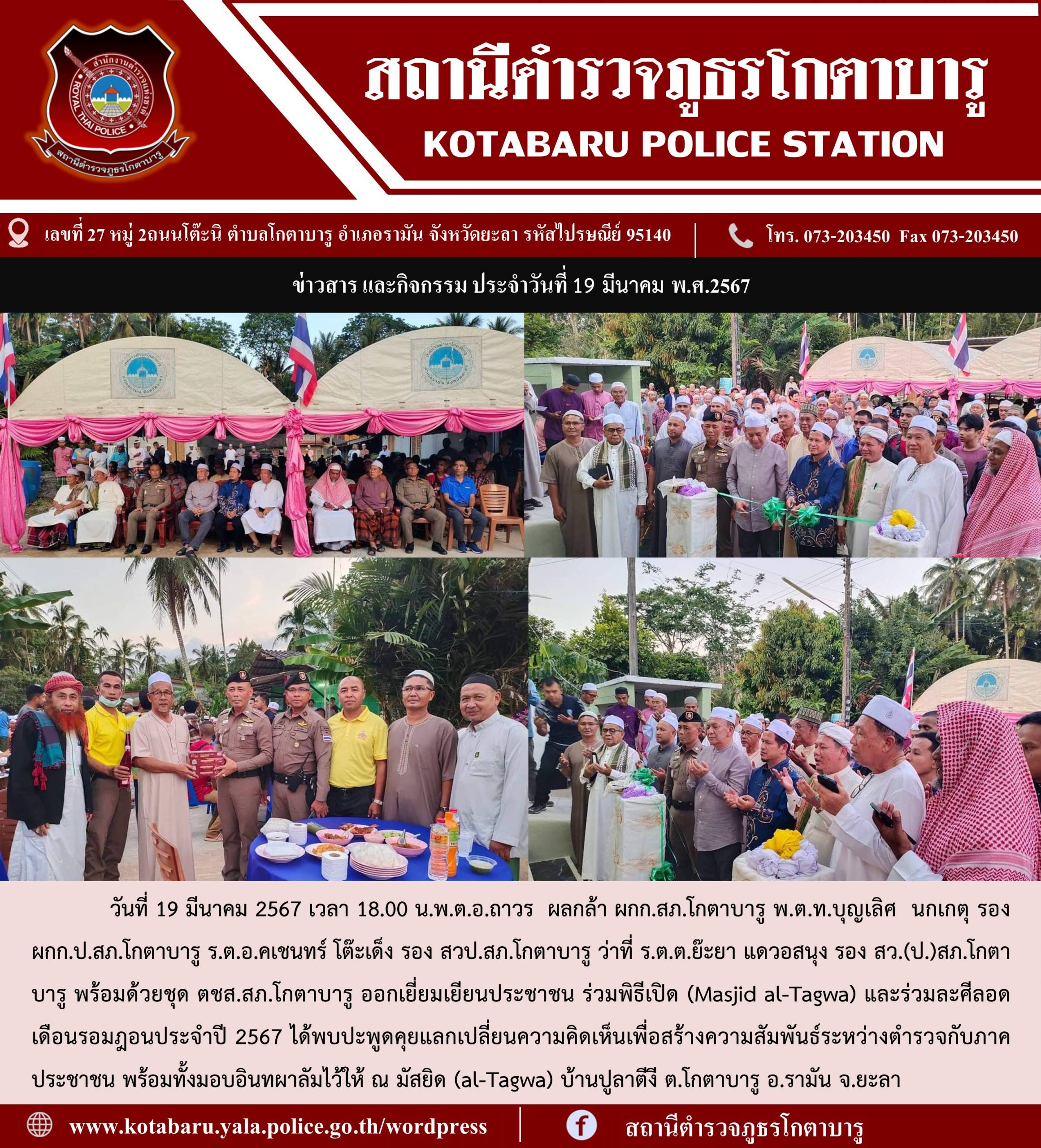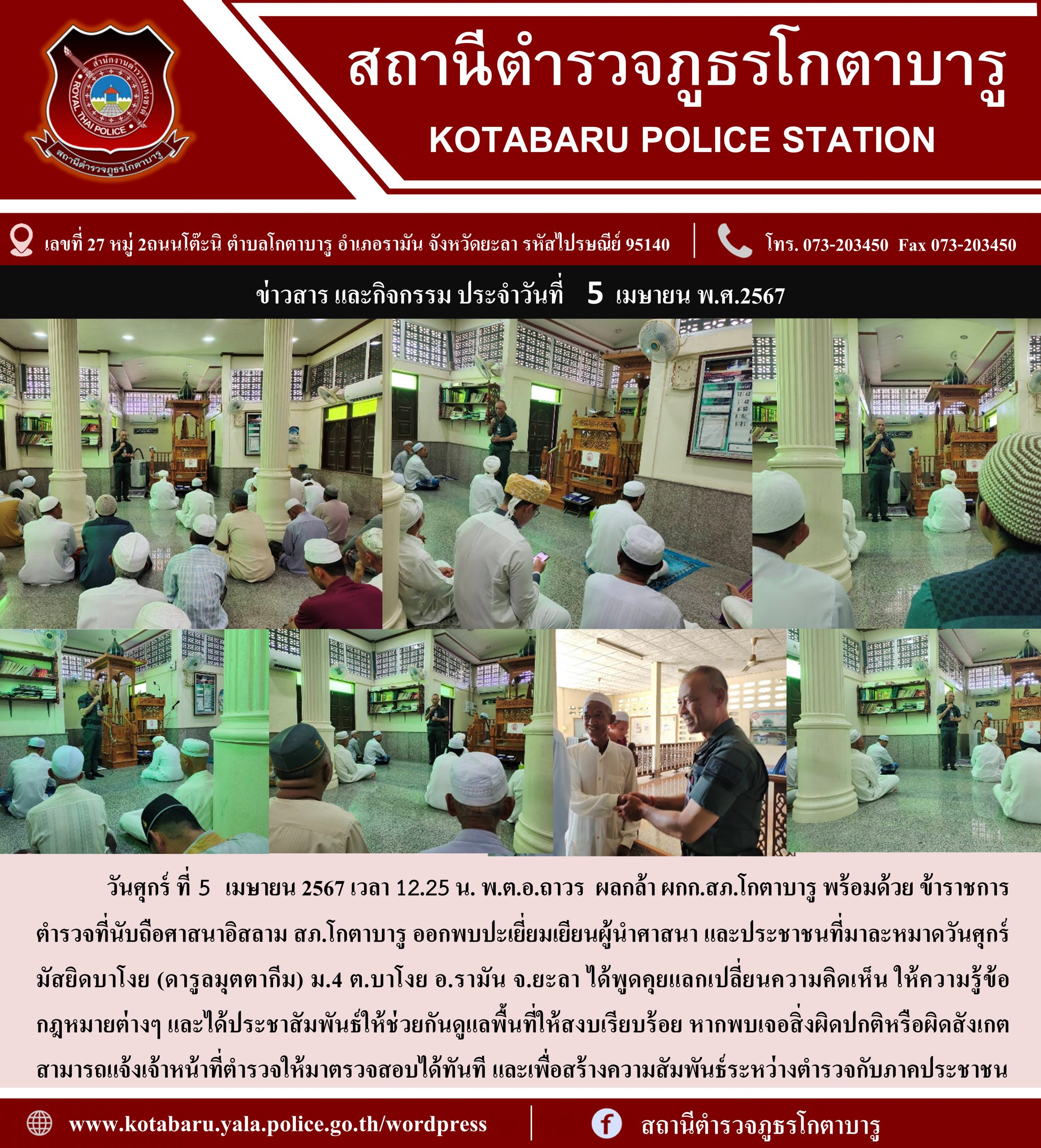 วันศุกร์ ที่ 5 เมษายน 2567 เวลา 12.25 น. พ.ต.อ.ถาวร ผลกล้า ผกก.สภ.โกตาบารู พร้อมด้วย