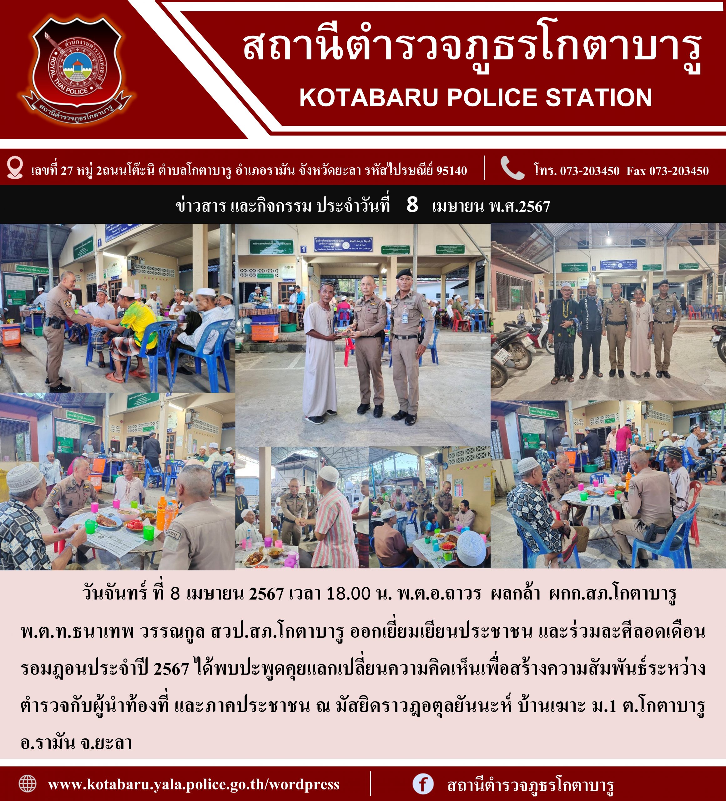 วันอังคาร ที่ 9 เมษายน 2567 เวลา 16.00 น. พ.ต.อ.ถาวร ผลกล้า ผกก.สภ.โกตาบารูพ.ต.