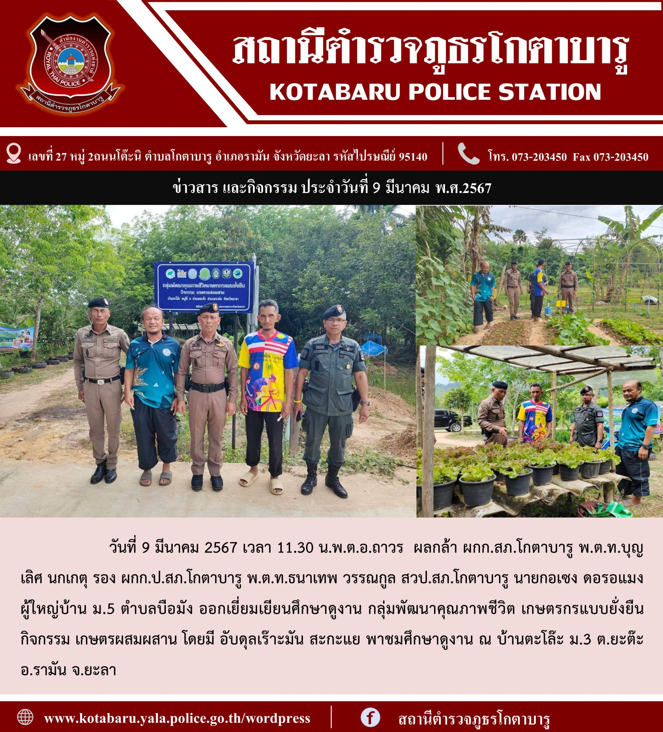 วันที่ 9 มีนาคม 2567 เวลา 11.30 น.พ.ต.อ.ถาวร ผลกล้า ผกก.สภ.โกตาบาร