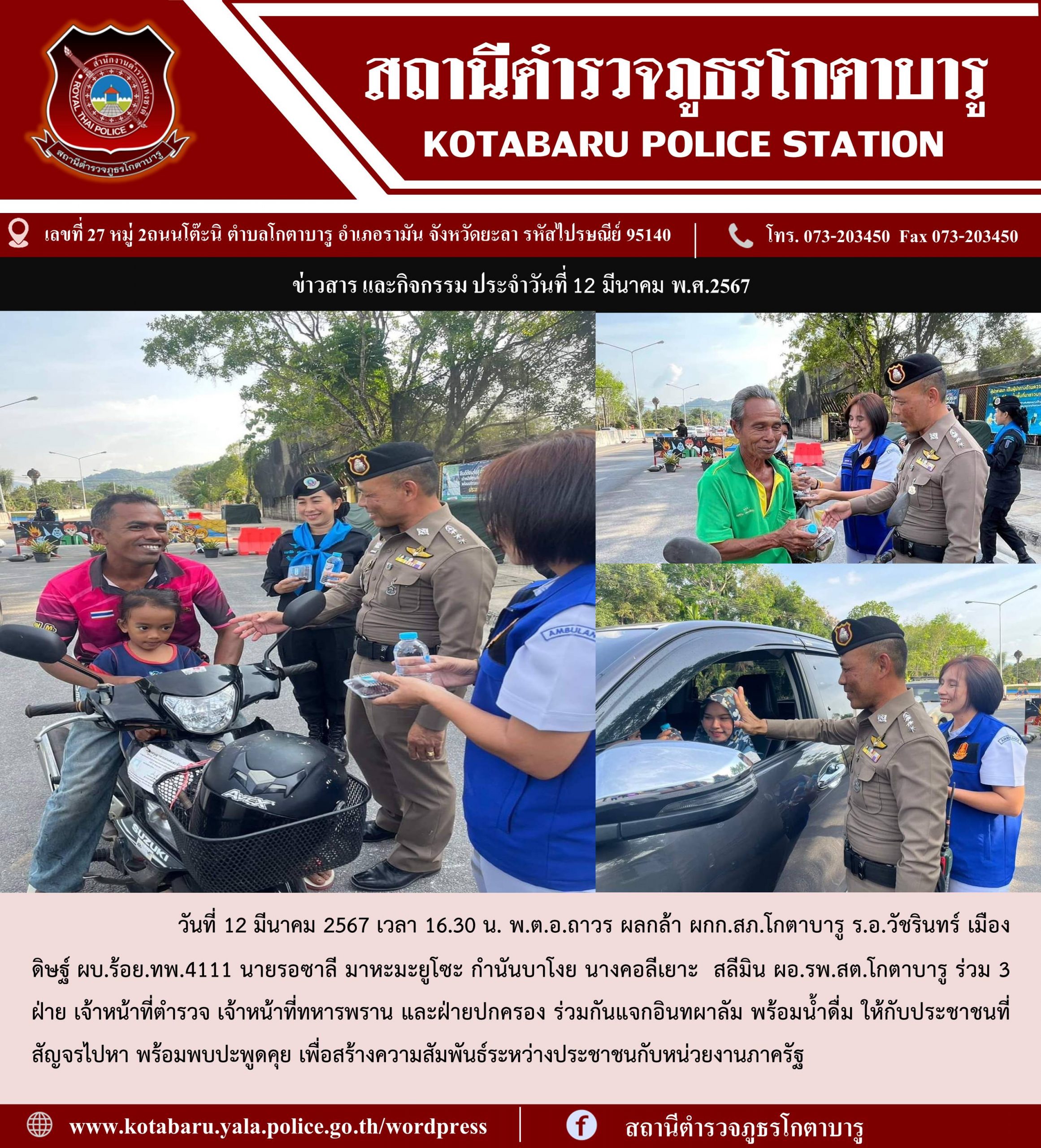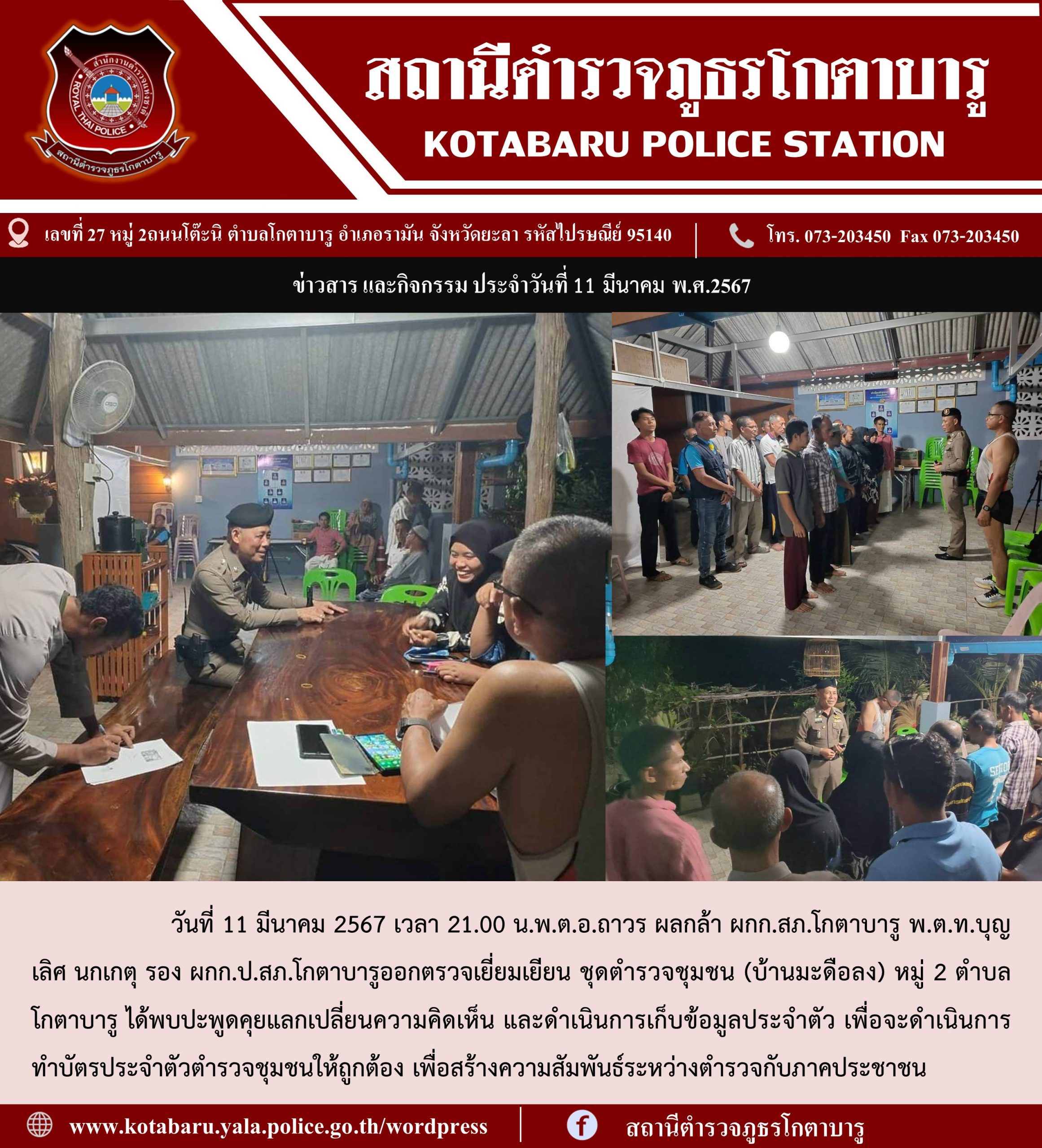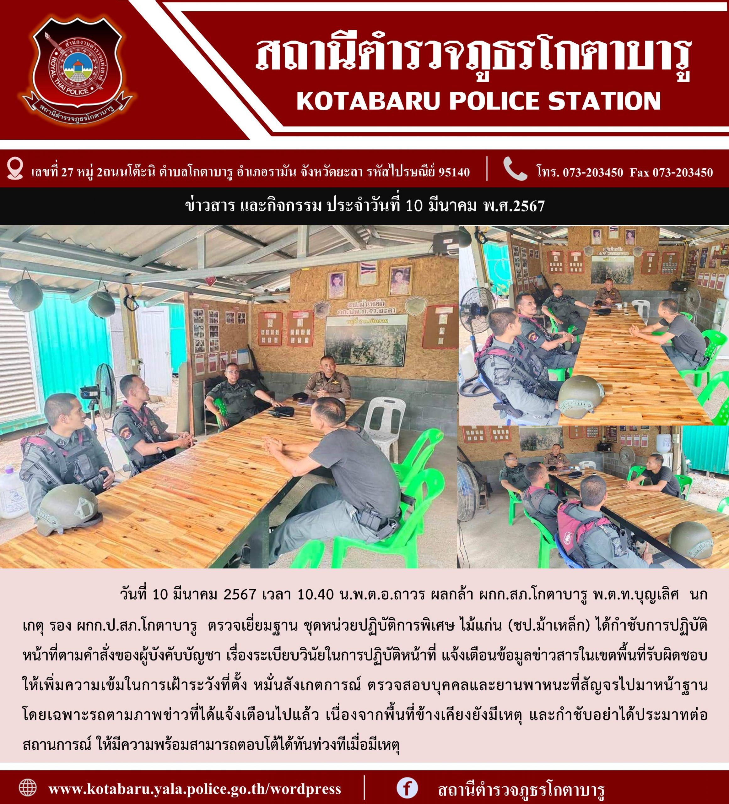 วันที่ 10 มีนาคม 2567 เวลา 10.40 น.พ.ต.อ.ถาวร ผลกล้า ผกก.สภ.โกตาบา