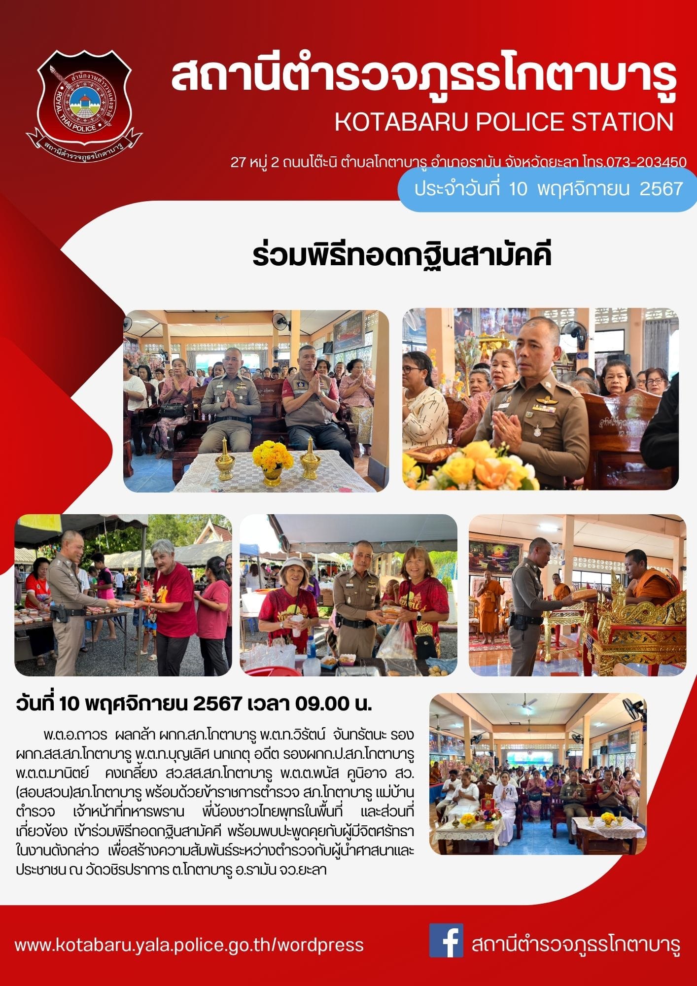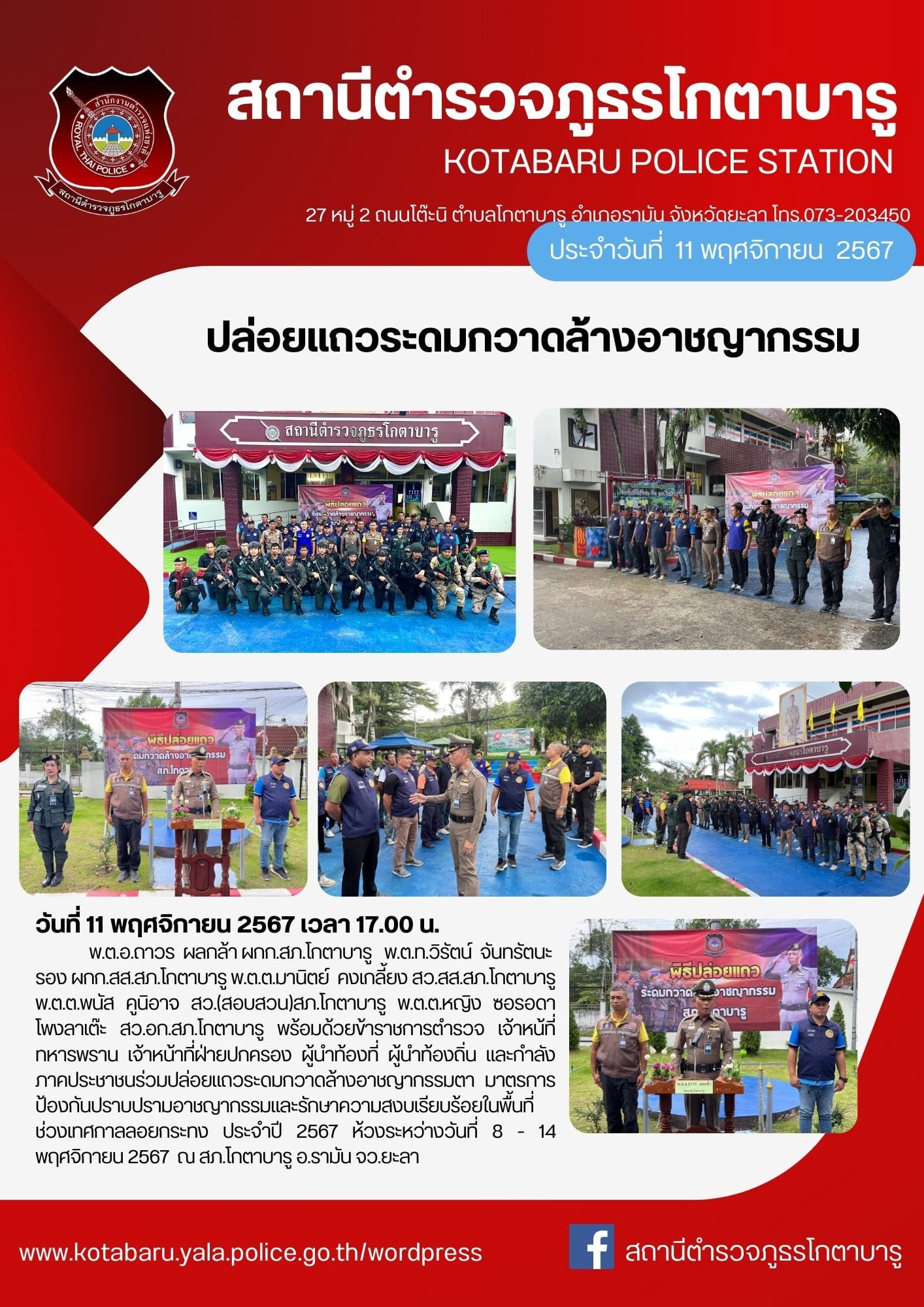 วันที่ 1 พ.ย.67 เวลา 08.30 น. พ.ต.ท.ธนาเทพ วรรณกูล สวป.สภ.โกตาบารู, ร.ต.ต.ย๊ะยา แดวอสนุง รอง สว(ป.)